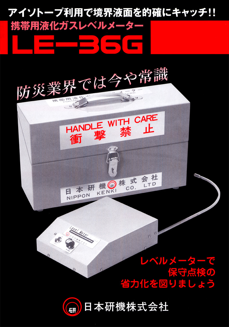 - 携帯用液化ガスレベルメーター[LE-36G]は、本体総重量約1.8㎏と軽量であって、形状も小さく機動性に富み作業のスピードアップがはかれます。
